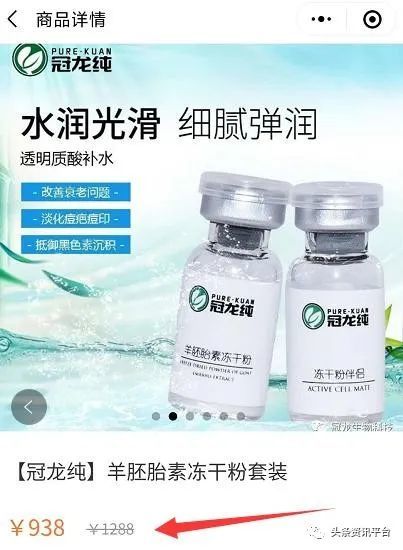 值得注意的是,冻干粉在冠龙商城上的售价为正是其所谓的“全国统一零售价”938元,然而,在938元的右侧,还被划掉了一个1288元,那么,这个高于全国统一零售价的1288元是怎么来的呢?