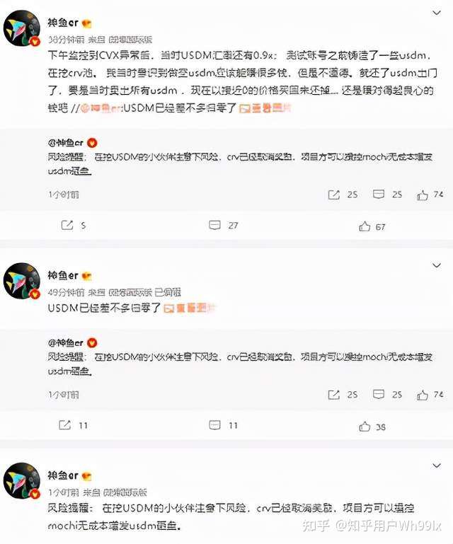 其实对于这个项目,之前币圈神鱼大佬也曾经预警过,提醒在挖USDM的小伙伴注意下风险。
