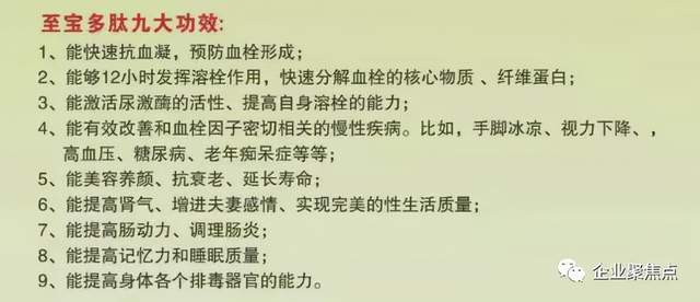 至宝多肽经销商张某称,至宝多肽至少有9大功效: