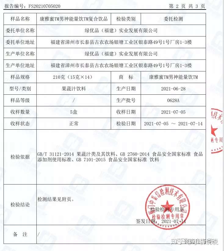 康雅蜜男神能量饮检测报告