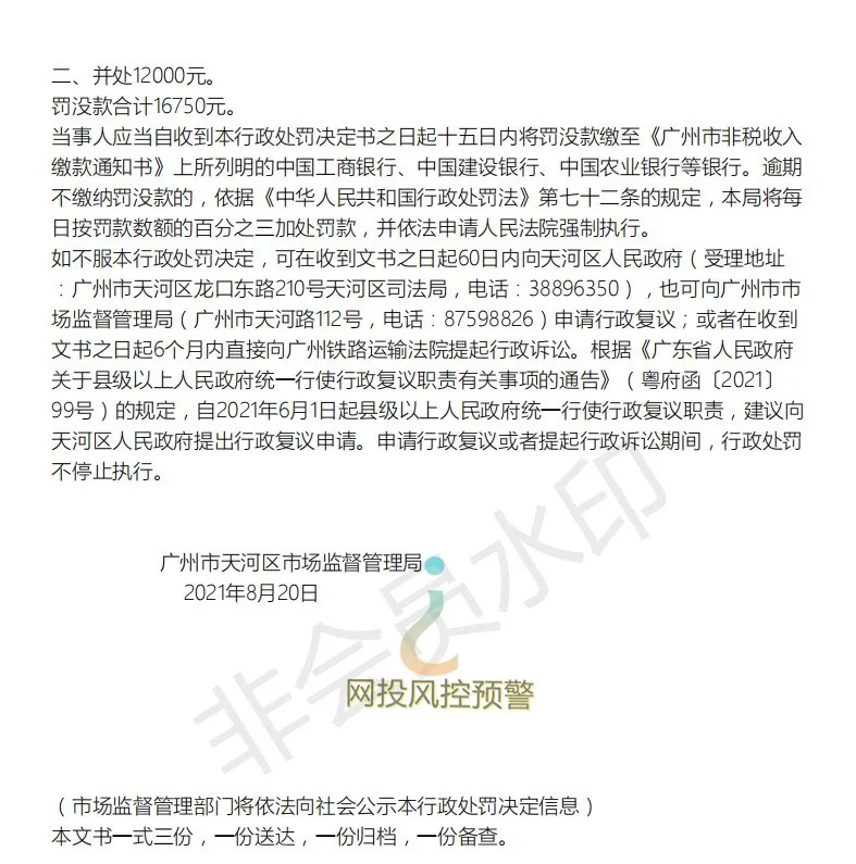 根据行政处罚决定书文号为穗天市监处字[2021]456号的处罚决定书显示: