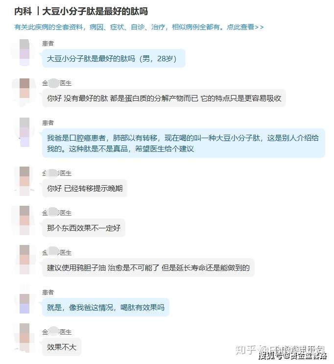 而实际上,肽无非就是分子量小于蛋白质的氨基酸链,吃了以后消化的产物和蛋白质没有区别,要知道,肽是组成蛋白质的单位,两个氨基酸分子组合成二肽,三个组成三肽,多个组成多肽。而人体消化食物的过程就是把蛋白质分解成多肽,最后分解成氨基酸分子,人体需要的就是氨基酸分子,因而吃小分子肽和直接吃蛋白质的效果是没有太大差别的。