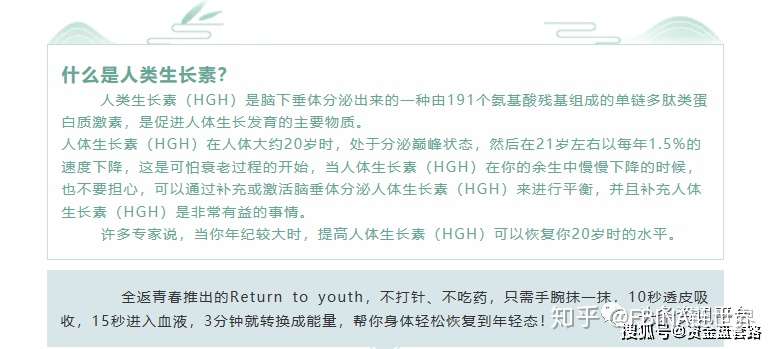 以HGH为卖点进行宣传的凝胶类产品在最近一段时间层出不穷,但无论是美国进口的,还是国产的,宣传方式都无外其中,个中的问题也都是大同小异,头条资讯平台前不久刚刚以《揭底六级代理、直推五百的“国药HGH”,New U Life公司与其有何联系?》为题对相关产品进行过报道,这里不多赘述。
