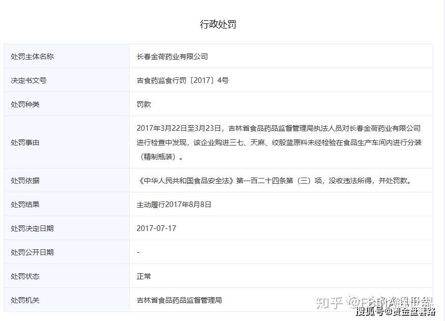 至于后者,2017年3月22日至23日,吉林省食品药品监督管理局执法人员在对长春金荷药业有限公司进行检查中发现,该企业购进三七、天麻、绞股蓝原料未经检验在食品生产车间内进行分装(精制瓶装)。最终,吉林省食品药品监督管理局依据《食品安全法》第一百二十四条第(三)项,对该公司处以了罚款。