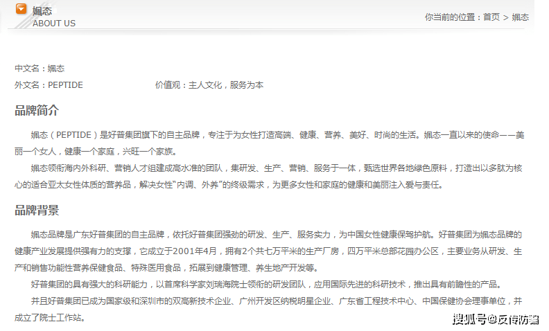 据悉,姵态(PEPTIDE)是好普集团旗下的自主品牌,专注于为女性打造高端、健康、营养、美好、时尚的生活,依托好普集团强劲的研发、生产、服务实力,为中国女性健康保驾护航。好普集团成立于2001年4月,拥有2个共七万平米的生产厂房,四万平米总部花园办公区,主要业务从研发、生产和销售功能性营养保健食品、特殊医用食品,拓展到健康管理、养生地产开发等,为姵态品牌的健康产业发展提供了强有力的支撑。