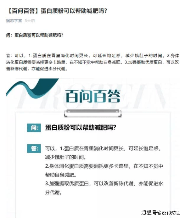 但道道调查后发现,姵态因虚假宣传问题已被媒体多次曝光。媒体指出在“姵态学堂”公众号上,一些宣传材料在介绍某类产品的功效时,往往都会附上自家产品的名称。比如文章《【百问百答】蛋白质粉可以帮助减肥吗?》明确表示蛋白质粉可以减肥,然后在图片的下方附上了“姵态多肽蛋白质粉”的产品名称,变相宣传其产品功效,让消费者认为姵态蛋白质粉可以减肥。