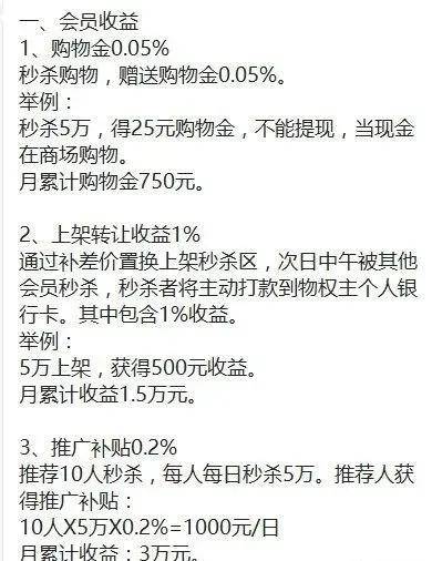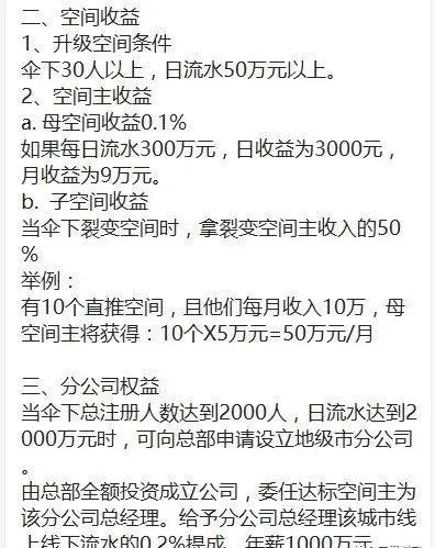此外,直推10人参与秒杀抢单,可以获得每人每天投资额0.2%的返利,招揽会员越多,层级越高,有空间主收益和分公司权益收益。