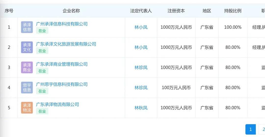 美商社通过企查查搜索相关信息,发现带有“承泽系”性质的企业共有六家。六个主体公司法定代表人分别为林小凤和林珍凤和林李生,且五家公司成立时间都集中于2021年6月,只有广州承泽信息科技有限公司成立于2020年11月。