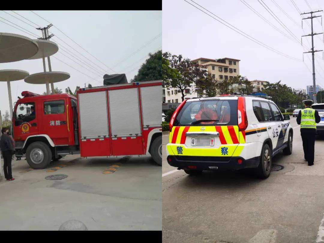 期间,警车、救护车、消防车、花都公务用车依次停留过。