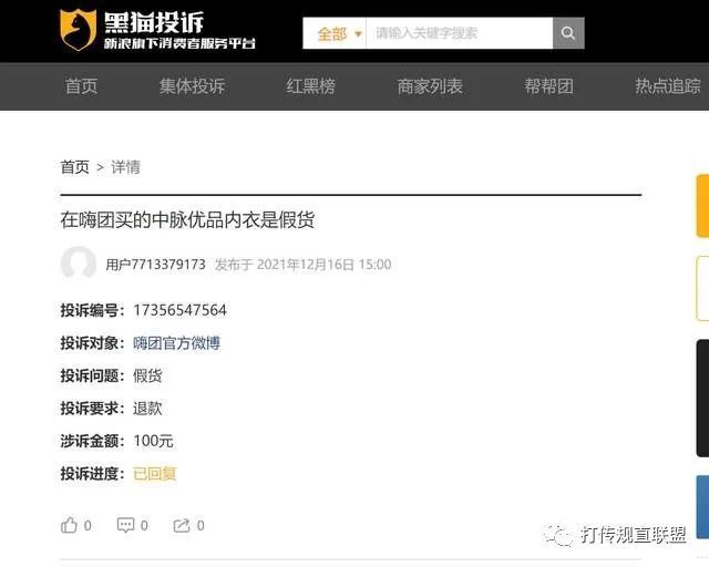 2021年12月16日,有消费者在黑猫投诉反映,在嗨团买的中脉优品胸罩没穿几天就变形了,根本就没法穿。