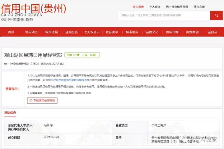 截图来源:信用中国(贵州)
