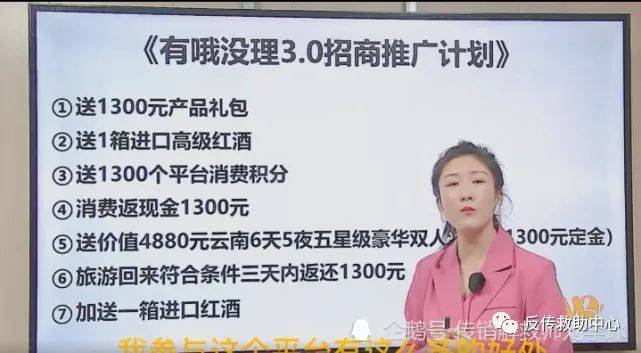 四、 有哦3.0招商推广计划(1) 送1300元产品礼包(2) 送1箱进口高级红酒(3) 送1300个平台消费积分(4) 消费返现金1300元(5) 送价值4880元云南6天5夜五星级豪华双人游(交1300元定金)(6) 旅游回来符合条件三天内返还1300元(7) 加送一箱进口红酒