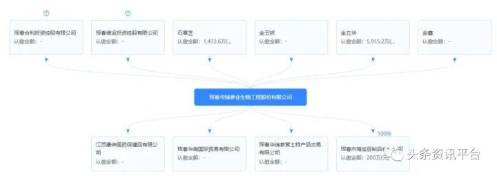 珲春华瑞参业生物工程股份有限公司成立于2006年7月24日,法定代表人金立华,注册资本1.377亿元,股东有金玉娇、石景芝、金立华、金鑫、珲春德运投资控股有限公司和珲春合利投资控股有限公司。据官方介绍,这是一家集人参种植、研发、生产、销售于一体的综合性深加工企业,珲春华瑞参业生物工程股份有限公司拥有“金立华”品牌人参系列食品、功能性食品、护肤品、日用品、饮品两百余款,是吉林省人参深加工领域产品种类最多、品种最全的人参深加工企业,也是吉林省内规模最大的人参深加工企业之一。