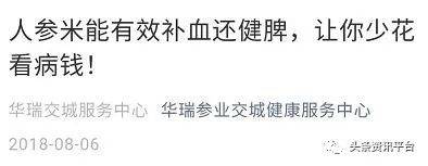 在公众号“华瑞参业交城健康服务中心”的宣传下,华瑞参业推出的“人参米”也具有了补血和健脾的功效,还能让人“少花看病钱”。