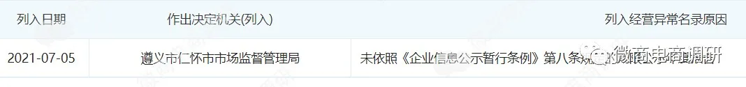 调查发现,不少与将军星集团有所关联的企业都有相应问题存在,比如身为将军星集团核心企业之一的贵州将军星酒业有限公司,2021年7月,该公司就已因未依照《企业信息公示暂行条例》第八条规定的期限公示年度报告,被遵义市仁怀市市场监督管理局列入企业经营异常名录,且至今未被移除。