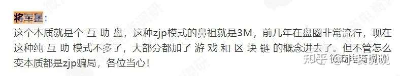 对于将军星这个项目的本质,有业内人士在此前也曾指出:“将军星的本质就是个互助盘,这种资金盘模式的鼻祖就是3M,前几年在盘圈非常流行,现在这种纯互助模式不多了,大部分都加了游戏和区块链的概念进去了。但不管怎么变,本质都是资金盘骗局,各位当心!”另外一位行业人士的说法也无外其中:“名字很新,玩法很老,这年代了居然还有互助盘的存在,这模式还有人玩吗?结果还真有人玩,互助盘就没有一个是长寿的,快的圈一轮,慢的也就三五个月,互助就是玩谁跑得快,一定要离远点。”