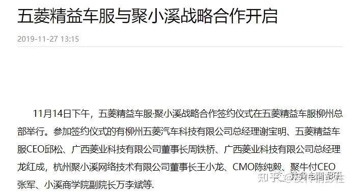 有关报道称,广西菱业科技有限公司总经理龙红成与杭州聚小溪网络技术有限公司董事长王小龙签订战略合作协议。五菱精益车服与聚小溪强强联合在聚小溪平台打造“车省钱”版块(经查,杭州聚小溪网络技术有限公司早在2020年7月已因通过登记的住所或者经营场所无法联系而被杭州市余杭区市场监督管理局列入经营异常名录,至今未被移除)。值得注意的是,柳州五菱汽车科技有限公司总经理谢宝明也出席了本次活动,这样来看,关爱之家和五菱汽车公司之间的关系的确匪浅。