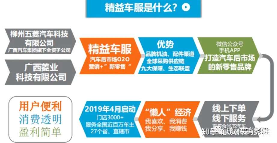 据公众号“精益车服运营服务商”介绍:精益车服是柳州五菱汽车科技有限公司和广西菱业科技有限公司共同打造的汽车后市场服务品牌,柳州五菱汽车科技有限公司是广西汽车集团旗下的全资子公司,精益车服运用的是汽车后市场o2o营销加新零售的产品销售模式,具有五菱品牌机油、配件渠道的供应优势,以及全球采购供应链优势。精益车服要打造的是汽车后市场的“美团”,美团是对接饭店到线上、精益车服是对接门店、修理店到线上。