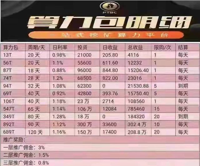 宋女士留存的截图中可以看到,会员在平台购买算力包后,可以获得日利率1%以上的收益。据李思了解,即使在依然允许众筹算力挖矿的其他一些国家,收益也不可能如此之高,肯定是不靠谱的。“最大的可能,就是平台利用了虚拟挖矿这个概念忽悠人参与,实际上就是庞氏骗局。用后来的人投的钱去当之前的人的收益,一旦新投入的资金续不上,平台肯定就爆雷跑路了。”