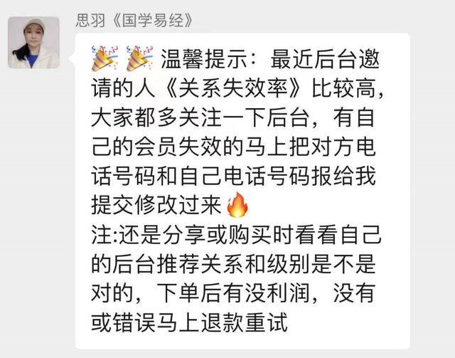 记者搜索发现,以“卖鞋”为名行传销之实的案例还有不少,在另一家量子鞋品牌的会员群中,一位导师还特意嘱咐其他会员:“最近后台邀请的人关系失效率比较高,大家都多关注一下后台,有自己的会员失效的,马上把对方电话号码和自己电话号码报给我。”
