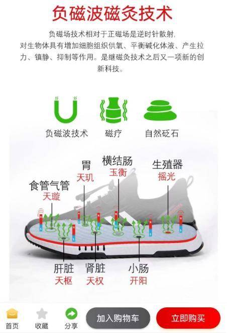 云算力挖矿平台至少还用了一个实际存在的概念。而“量子鞋”的宣传语则完全脱离了科学常识。记者在产品介绍中看到,399元的鞋宣称自己使用了“纳米量子远红外科技”,更高级别的鞋子则添加了“负磁波磁灸科技”。最贵的鞋子被称作“尿酸款”,但记者反复浏览产品介绍,也没看出它跟尿酸有什么关系。在量子鞋的会员群中,导师对鞋的功效更是吹上了天,号称可以包治百病。事实上,此前就有多家媒体报道过“量子鞋”概念造假,而国家市场监管总局也曾对“磁灸”的虚假宣传进行过整治。