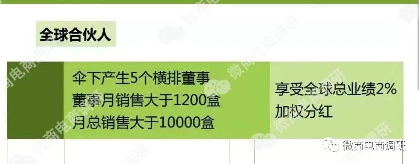 第五个奖励是成就奖,销售团队共有5个董事,当董事的月销售大于1200盒,月总销售大于10000盒时,还可以享受全球总业绩的2%加权分红。
