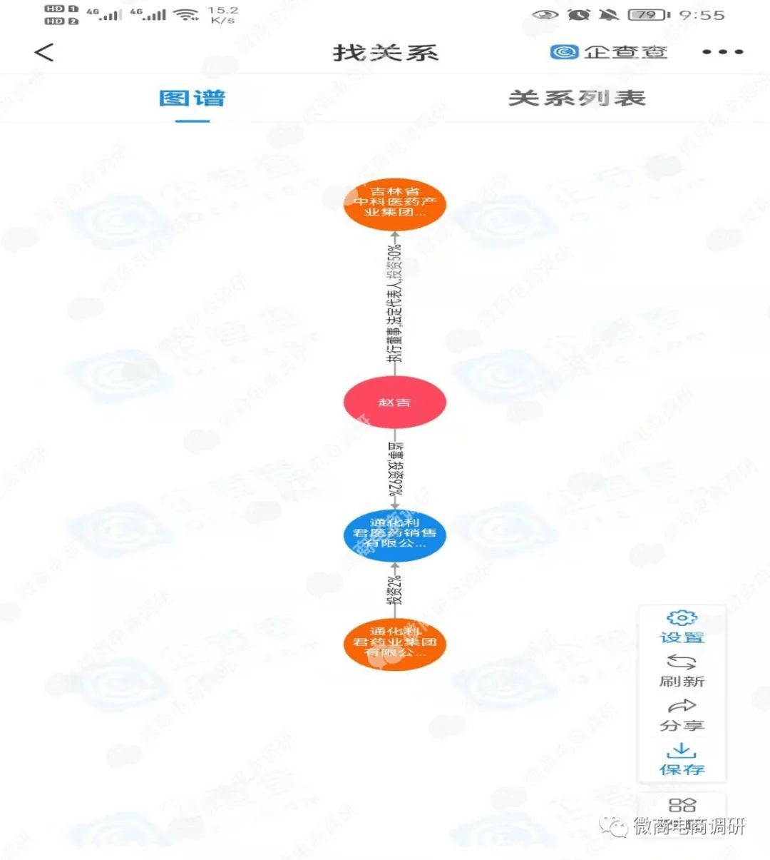 监制企业吉林中科医药产业集团有限公司的法定代表人赵吉与生产企业通化利君药业集团有限公司共同投资了通化利君医药销售有限公司,分别投资了92%和2%,由此可以看出通化利君医药销售有限公司的成立是为了绑定赵吉与通化利君药业集团有限公司的合作关系,赵吉是视丹明项目的创始人。