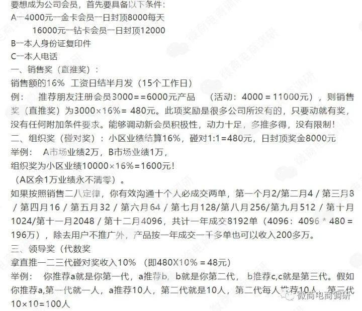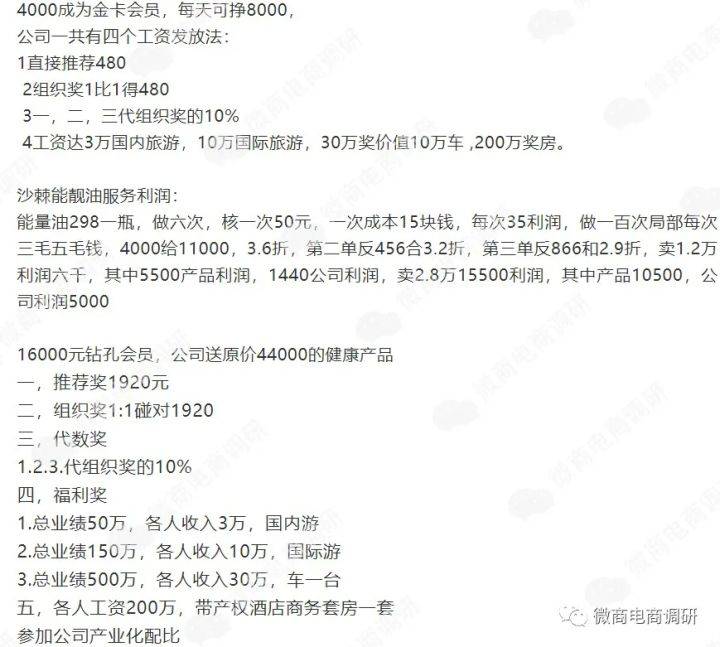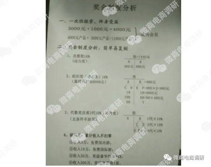 据悉,鼎鑫生物此前采用的直销模式以所谓“复合经营机制”为核心,以“一个政策,三种模式”为特色,即独特的“会员+连锁店+产业化配比”运营模式。据公众号“AA鼎鑫沙棘玉田形象店”介绍,鼎鑫生物在当时所推行的奖金制度(另有经销商表示,鼎鑫生物的奖金制度很多年都没有变过)如下: