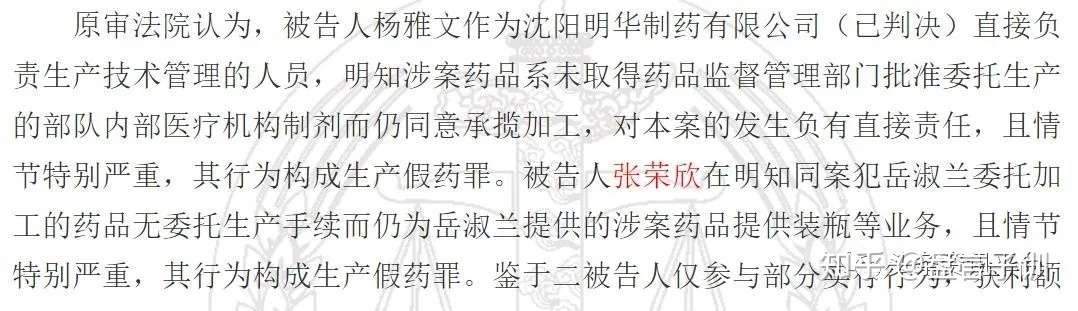 除了公司本身遭到过有关部门的处罚外,该公司的相关人员还曾牵涉到一宗生产、销售假药案中。据中国裁判文书网披露:张荣欣,系沈阳富沃德生物科技有限公司厂长及监事。在2014年11月至2015年1月15日期间,有人找到张荣欣,提出自己有一批沈政制药的胶囊比较急,希望厂里帮忙装瓶,后双方约定每瓶包装费0.4元。