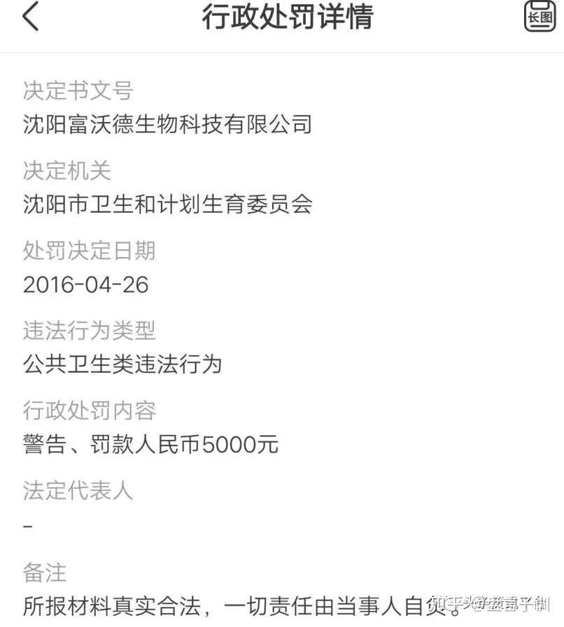 在2016年,该公司因公共卫生类违法行为被沈阳市卫生和计划生育委员会处以警告、罚款人民币5000元。