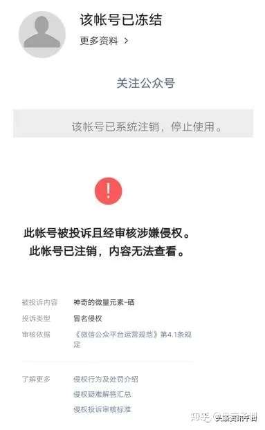 目前,我们在经销商的朋友圈中,看到的几篇关于补硒可以治病的文章的发布者账号不是被冻结,就是文章由于此账号被投诉并经审核涉嫌侵权而无法查看。