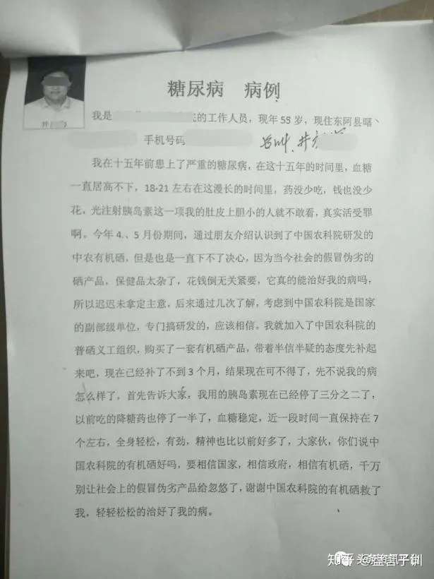 除此之外,在网上还有很多“案例”予以佐证。在一位经销商的微信朋友圈当中,我们就发现了一位号称是患有十五年糖尿病的井先生,为了维持生活,他需要长期注射胰岛素,吃了许多药也并无好转。后来在朋友的介绍下,加入了中农硒源的普硒义工组织,买了一套中农硒宝。结果,不到三个月,所用的胰岛素便已停用了三分之二,降糖药也停了一半,并且血糖重回稳定。