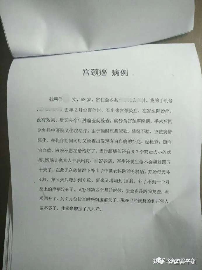 还有一位确诊为宫颈癌晚期的李女士,此人的经历更为传奇。据说,她在医院治疗癌症的期间还引发了白血病,此后,在医院的后续检查中,又发现自己还得了血癌,医生说只剩下四五十天的生命,让其回家。无奈之下,她吃上了中农硒宝,在七个月后去医院再一次检查,发现癌细胞消失,现在已经恢复得和正常人一样。