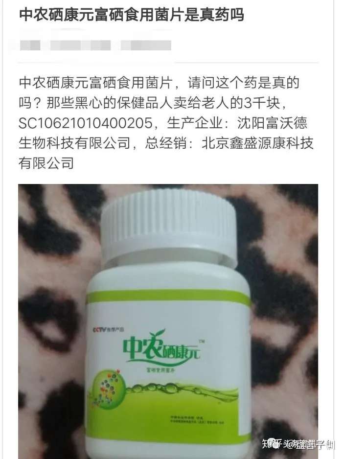 除了中农硒宝,中农硒源名下还有另外一款叫做“中农硒康元富硒食用菌片”的产品,曾有网友在药品价格315网上咨询该产品是否属于“真药”。