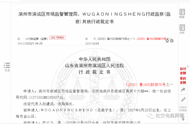 滨州市滨城区市场监督管理局、WUGAONINGSHENG行政监察(监察)其他行政裁定书