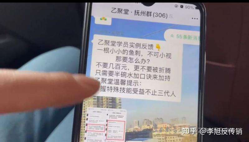 王女士告诉记者,她母亲是一个月前进入 " 乙聚堂 " 公司的,每天非常认真地去听课做笔记。看着母亲像着魔一样,王女士坐不住了,吵架成了母女生活常态。后来,王女士看到母亲交了钱,才发现母亲手机的微信群里有一些很荒唐的视频信息,其中有一条说一个学员的小孩吃鱼被鱼刺卡到喉咙,然后用他们咒语,不用去医院,不用几百元钱,就只要乙聚堂半碗水加上口诀,就可以解决问题。
