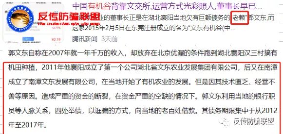 就在前几天,腾讯网报道的《中国有机谷背靠文交所,运营方式光彩照人,董事长早已被法院列为“老赖”!》就曝光了郭文东的“老赖”行为和其诓骗的方式。