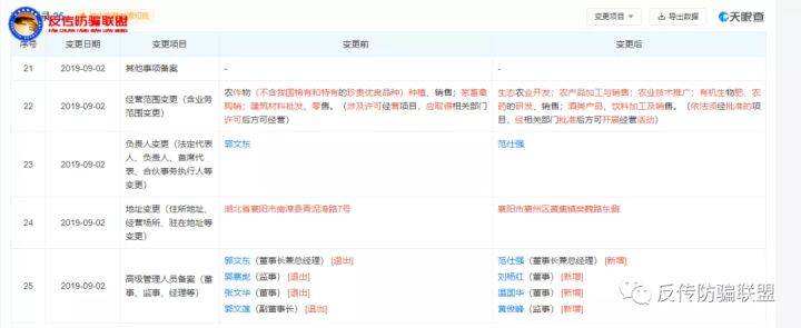 实际上,从天眼查的变更记录显示,郭文东是从2019年9月2日才退出文东有机谷(中国)有限公司董事,变更法人的。