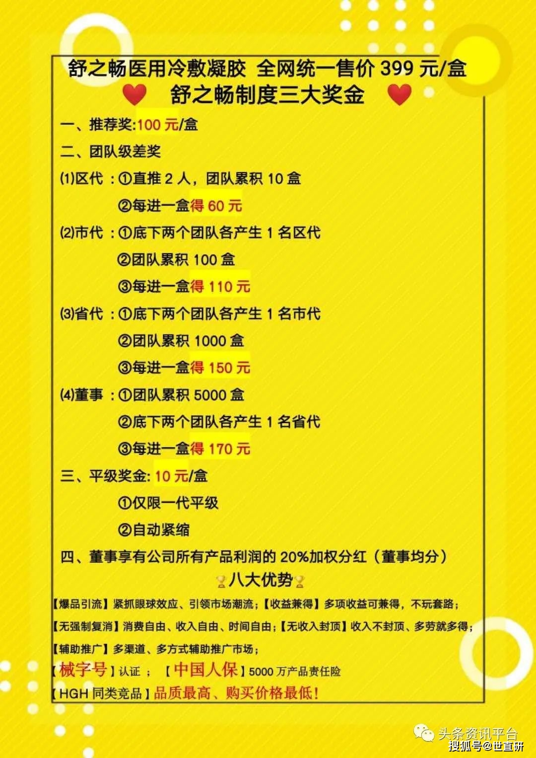 在上篇报道中,我们认清了舒之畅冷敷凝胶的适用范围,以及围绕着该产品的诸多虚假宣传事件,在本篇报道中,我们所将关注的是舒之畅凝胶的推广模式与奖金制度。