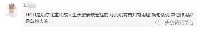 在网上,还曾有网友在春雨医生网站上咨询HGH的用途,对此,内蒙古自治区妇幼保健院的王医生如此说道:“HGH是治疗儿童和成人生长激素缺乏症的,除此没有告知有用途,换句话说,其他作用都是忽悠人的。”