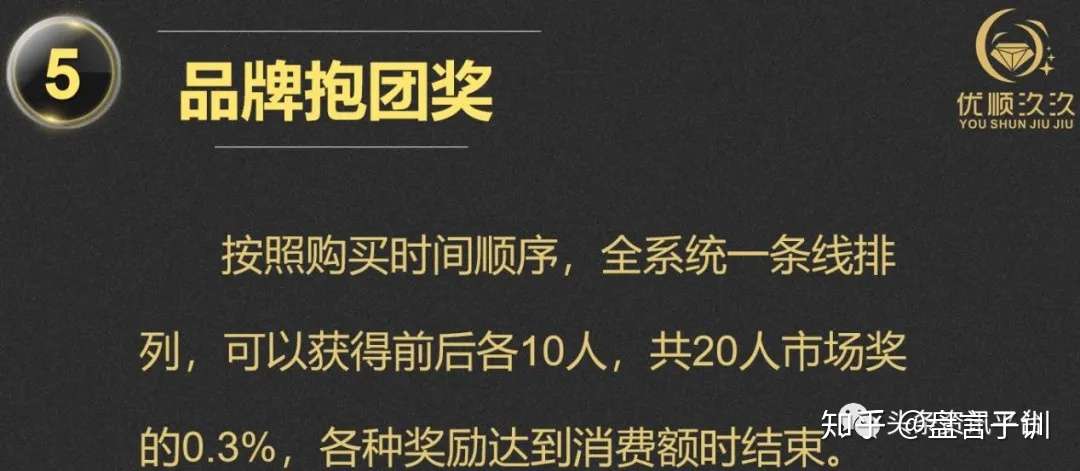 按照购买的时间顺序,全系统一条线排列,可以获得前后各10人,共20个市场奖的0.3%,各种奖励达到消费额时结束。