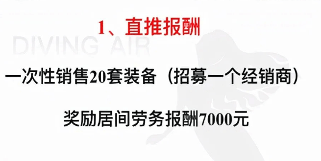 据调查,潜羽美人鱼的会员分为普通学员和经销商体系,在各种游泳馆招收普通学员,再通过各种模式将“粉丝”发展成经销商。潜羽美人鱼以创业为名,激励会员缴纳25800元加入成为经销商,成为经销商之后可以招募普通学员,最主要是可以招募经销商。经销商招募一个经销商,可以得到7000元的红利。