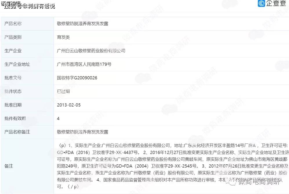 首先,第一款敬修堂防脱滋养育发洗发露是广州白云山敬修堂药业股份有限公司旗下的产品,俗称大红瓶,属于国产非特殊用途化妆品,其功效是防脱滋养。但是调查显示,此款证书明确标注了国家食品药品监督管理局未组织对本产品所称功效进行审核,本批件不作为对产品所称功效的认可。