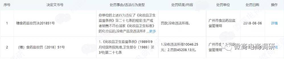 据企查查显示,广州白云山敬修堂药业股份有限公司也曾因违反了《化妆品卫生监督条例》第二十七条的规定:生产或者销售不符合国家《化妆品卫生标准》的化妆品受到了行政处罚。