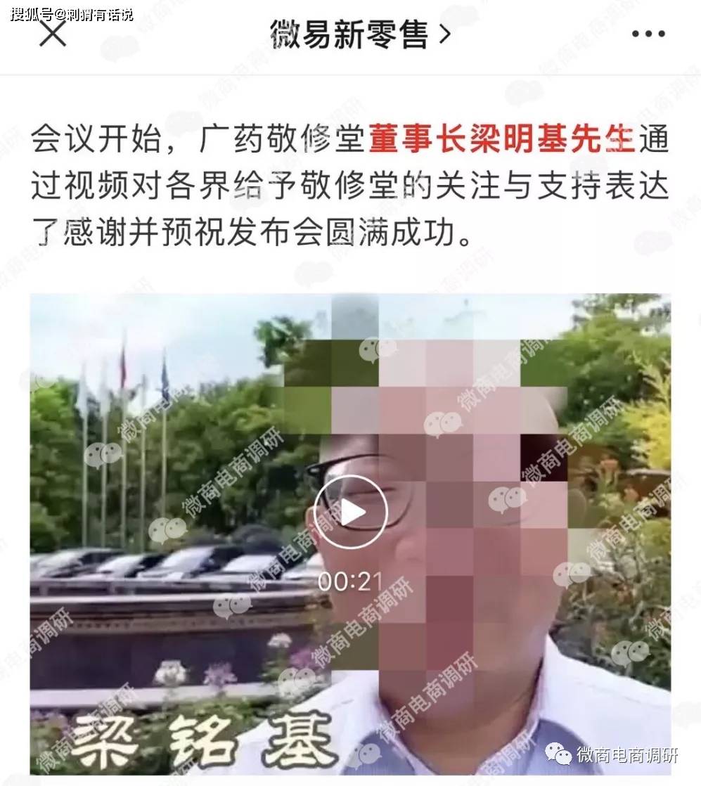 从微易新零售官方公众号上,我们调查得知在一场由东莞微易网络科技有限公司主办的广药白云山敬修堂防脱育发新品发布会上,广药敬修堂董事长梁铭基先生还通过视频为发布会送上了祝福视频。