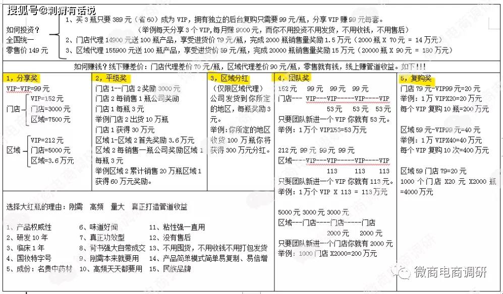 除了零售利润和极差利润,大红瓶代理还有分享奖,平级奖,团队奖,复购奖,具体奖励政策如下图: