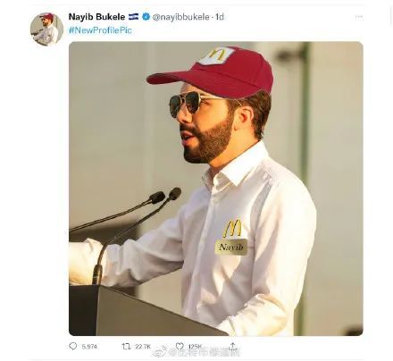 1月24日,萨尔瓦多总统纳伊布·布克利(Nayib Bukele)在推特上发布了一张自己穿着麦当劳制服的照片。
