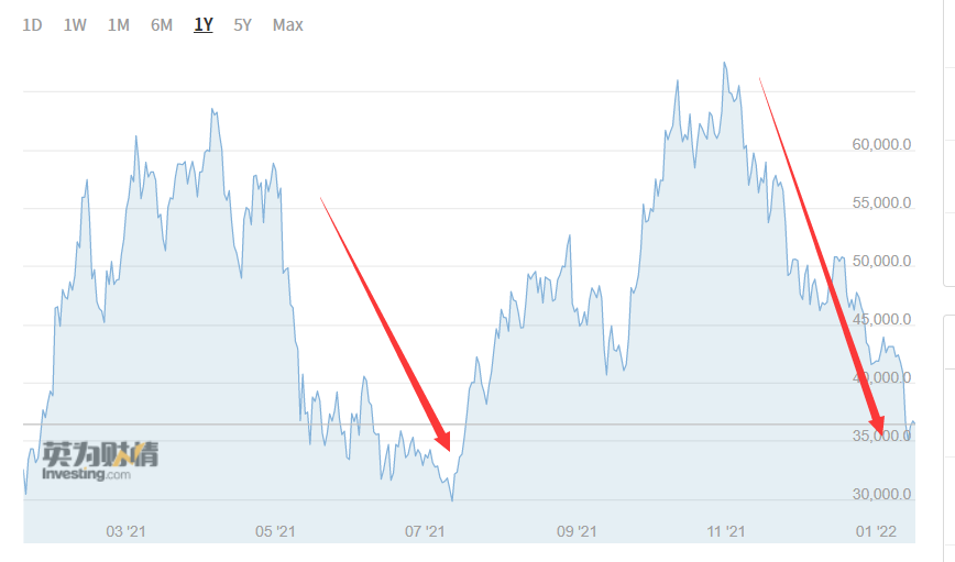 随着矿机、矿场出走海外,比特币休整之后,一度在11月时再度达到68928.9美元的历史高位。不过在美国缩表预期之下,比特币再次进入下跌通道。截至目前,比特币的价格已经腰斩。