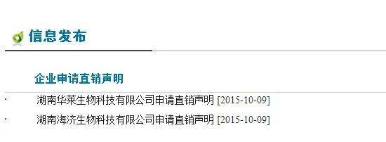 值得注意的是,当中的湖南海济生物科技有限公司(简称:海济生物)为准直销企业,据商务部官网显示,海济生物曾与同省兄弟企业华莱生物共同向商务部申请直销牌照,申请公示的日期为2015年10月9日。不过随着权健事件的发生,商务部对直销牌照的审批按下了“暂停键”,其原有的受理公示信息也已不再对外公示,至今湖南海济也未能获得商务部颁发的直销牌照。