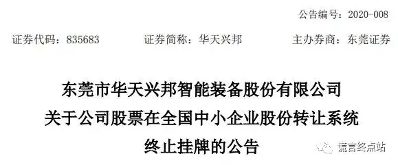 2020年3月25日,发布公告从“新三板”退市!